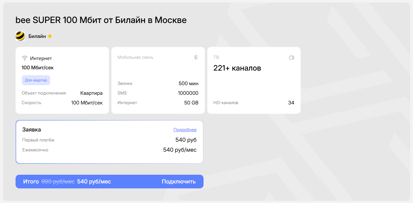Подбор тарифа через VseTarifi.ru значительно упрощает процесс выбора. На сайте можно проверить, какие провайдеры работают по адресу пожилого человека, и сразу увидеть доступные тарифы со скоростью от 100 Мбит/с. Это избавляет от необходимости обзванивать операторов и самостоятельно разбираться в условиях подключения.