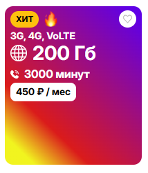 Тариф «Ростелеком 200 ГБ + 3000 минут»