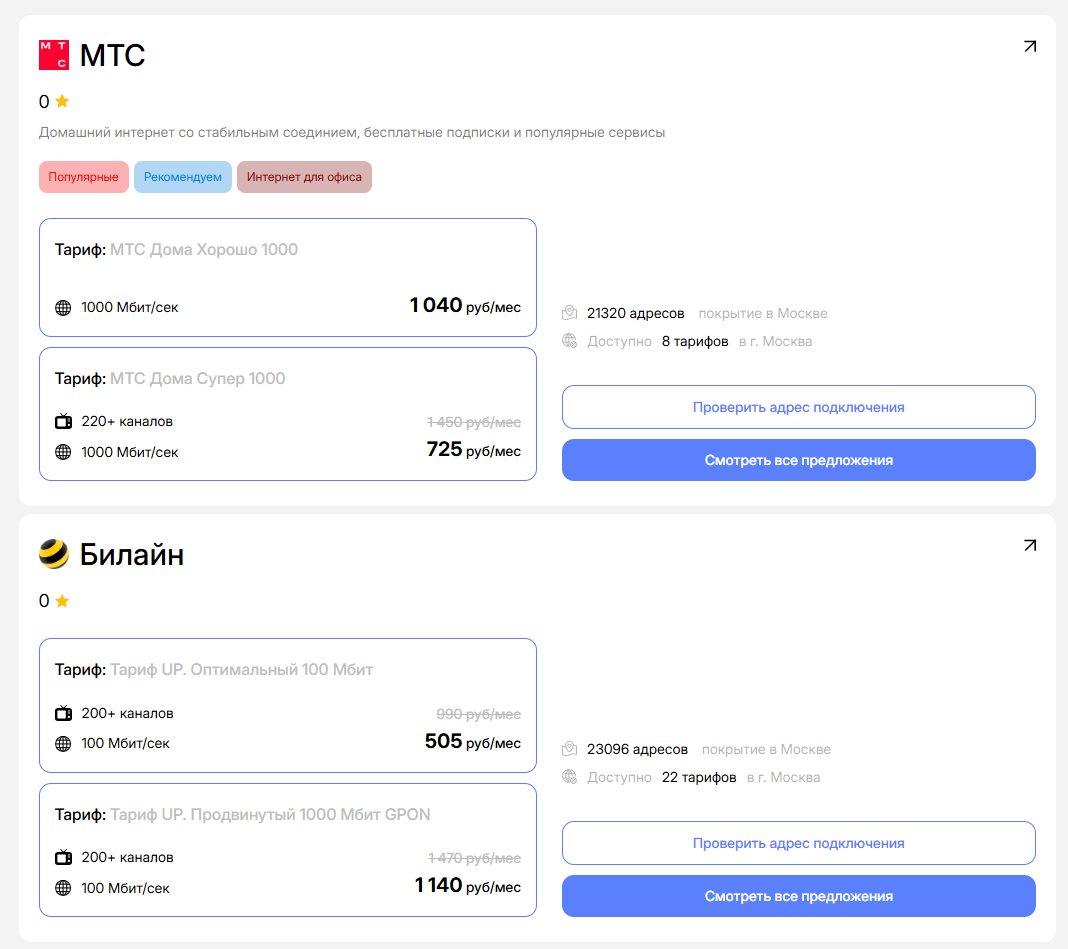 Платформа показывает реальные цены и условия, а значит, можно сразу понять, какой оператор лучше справляется в вашем регионе.