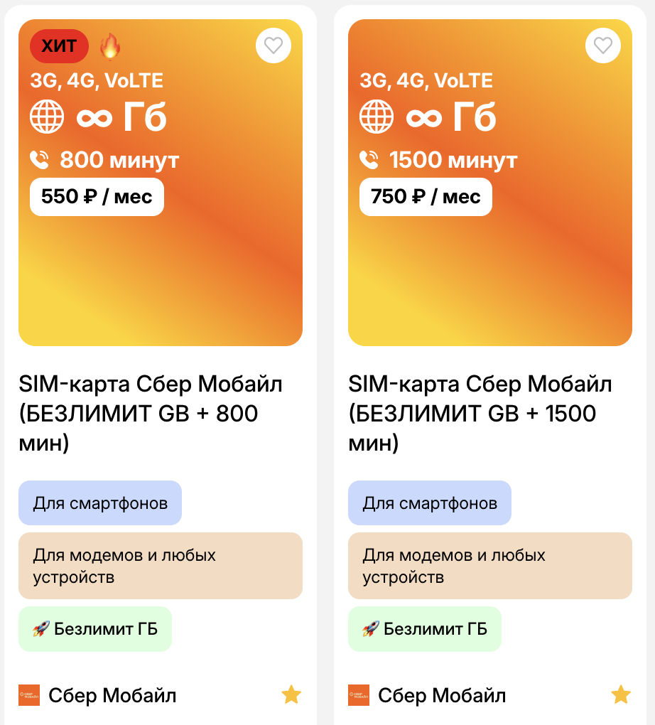 - «СберМобайл» также предлагает тарифы с безлимитным интернетом с разным объемом минут.