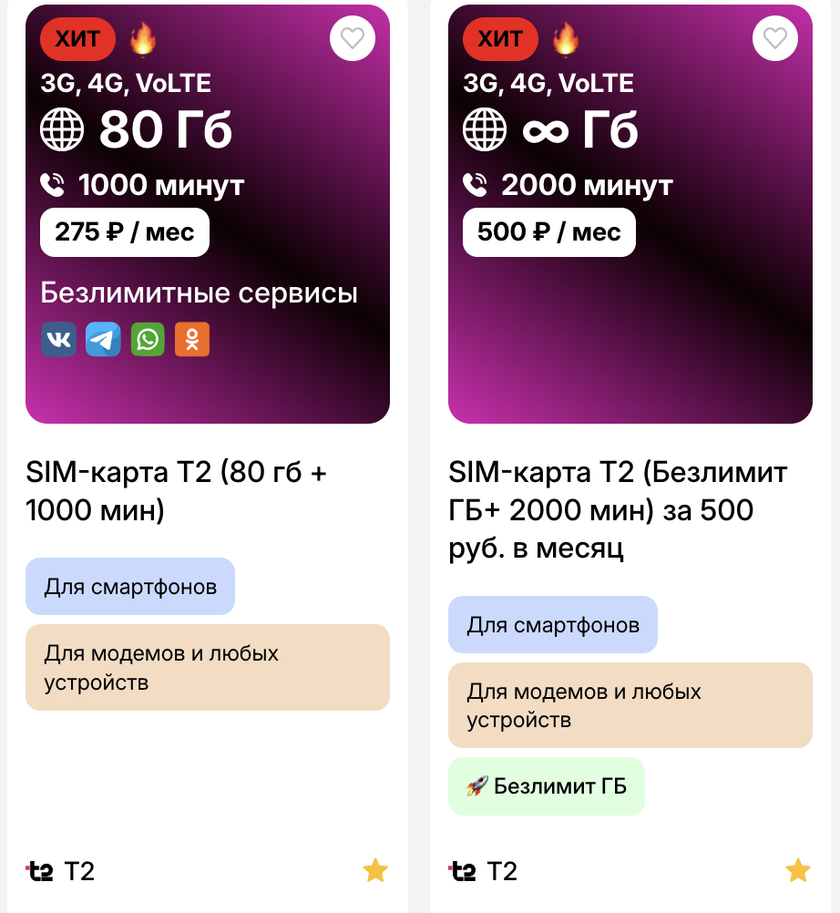 Т2 завоевала популярность прежде всего за счет демократичной ценовой политики. Изначально позиционируя себя в качестве простого и честного оператора, компания до сих пор сохраняет этот имидж, предлагая понятные и доступные тарифы.
